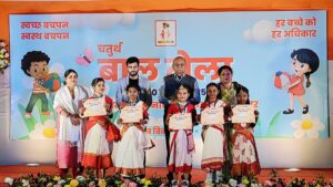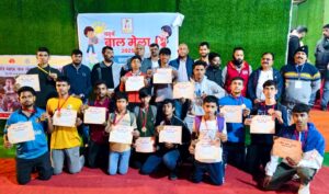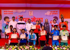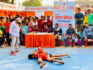 जमशेदपुर-  साकची में स्वर्णरेखा क्षेत्र विकास ट्रस्ट और नेचर फाउंडेशन के संयुक्त तत्वावधान में चल रहे चतुर्थ बाल मेले के चौथे दिन कुश्ती, तीन पैर की दौड़, बोरा दौड़, सुई धागा दौड़, चम्मच दौड़ आदि प्रतियोगिताओं का आयोजन हुआ प्रथम, द्वितीय और तृतीय स्थान पर रहने वाले प्रतिभागियों को मेडल और प्रमाण पत्र दिये गये। विवरण इस प्रकार हैः-