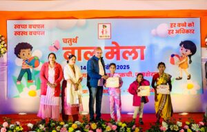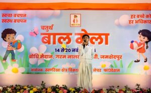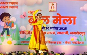 साकची में स्वर्णरेखा क्षेत्र विकास ट्रस्ट और नेचर फाउंडेशन के संयुक्त तत्वावधान में चल रहे चतुर्थ बाल मेले के चौथे दिन कुश्ती, तीन पैर की दौड़, बोरा दौड़, सुई धागा दौड़, चम्मच दौड़ आदि प्रतियोगिताओं का आयोजन हुआ प्रथम, द्वितीय और तृतीय स्थान पर रहने वाले प्रतिभागियों को मेडल और प्रमाण पत्र दिये गये