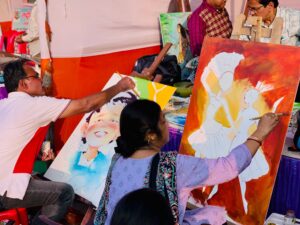 नामी चित्रकार इकट्ठा हुआ बालमेले में