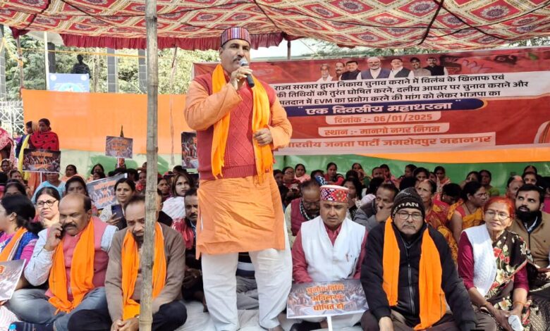 नगर निकाय चुनाव में हो रही देरी को लेकर भाजपा ने सरकार के खिलाफ खोला मोर्चा, मानगो नगर निगम कार्यालय पर प्रदर्शन कर दिया धरना