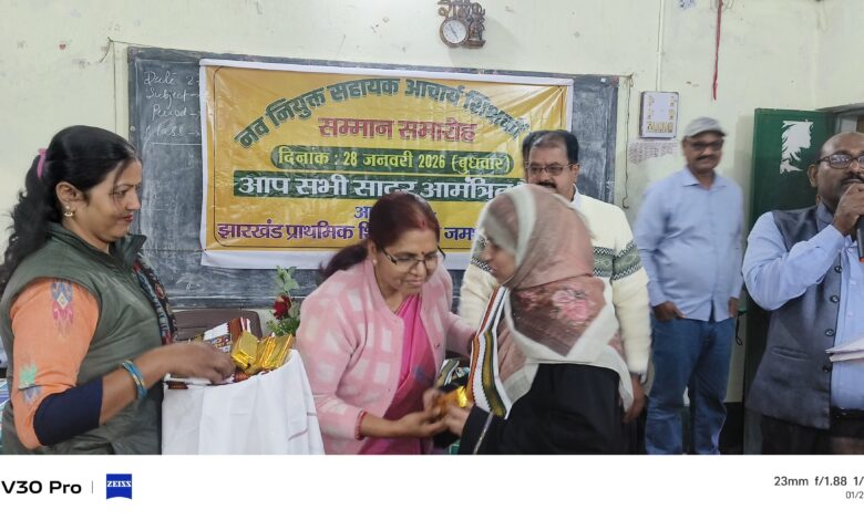 जमशेदपुर- आज राजस्थान विद्या मंदिर उच्च विद्यालय में झारखंड प्राथमिक शिक्षक संघ जमशेदपुर वन एंड टू की तरफ से नवनियुक्त सहायक आचार्य शिक्षक सम्मान समारोह का आयोजन किया गया