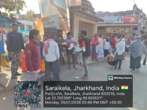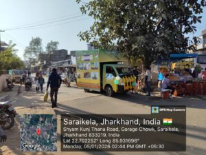 सरायकेला खरसावां- राष्ट्रीय सड़क सुरक्षा माह–2026 के अंतर्गत जिला परिवहन विभाग, सरायकेला–खरसावाँ द्वारा जिले में सड़क सुरक्षा के प्रति जन–जागरूकता बढ़ाने हेतु विभिन्न कार्यक्रमों का आयोजन किया जा रहा है। इसी क्रम में आज दिनांक 05 जनवरी 2026 को सरायकेला प्रखंड अंतर्गत जागरूकता रथ के माध्यम से सड़क सुरक्षा जागरूकता अभियान संचालित किया गया।