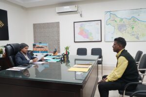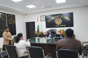 समाहरणालय स्थित कार्यालय कक्ष में आयोजित जन शिकायत निवारण दिवस में उपायुक्त कर्ण सत्यार्थी ने विभिन्न प्रखंड एवं शहरी क्षेत्र से आए नागरिकों से मुलाकात कर उनकी समस्याओं एवं सुझावों को सुना