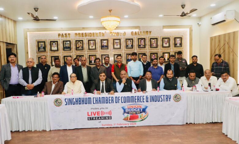 सिंहभूम चैम्बर में देश के केन्द्रीय आम बजट-2026-27 का हुआ सीधा प्रसारण सिंहभूम चैम्बर ऑफ कॉमर्स एंड इंडस्ट्री (SCCI) ने वित्त वर्ष 2026