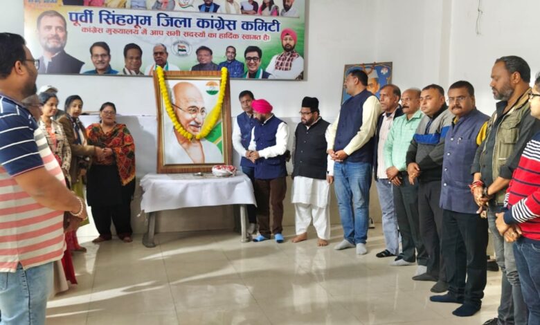 पूर्वी सिंहभूम जिला कांग्रेस कमेटी के तत्वाधान में कांग्रेस कार्यालय तिलक पुस्तकालय में जिला अध्यक्ष परविंदर सिंह के अध्यक्षता में महात्मा गांधी  का पुण्यतिथि आयोजित किया गया जिसमें जिला अध्यक्ष परविंदर सिंह एवं सभी वरिष्ठ कांग्रेस के नेताओं, कार्यकर्ताओं ने पुष्प अर्पित कर श्रद्धांजलि दिया