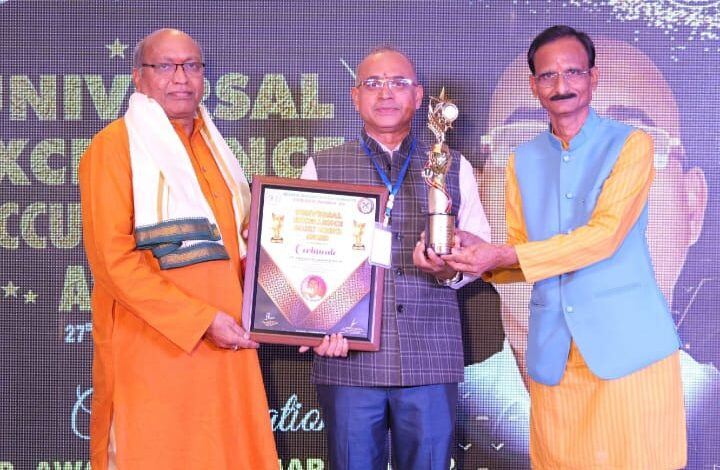 जमशेदपुर – भारत के जाने माने ज्योतिषीय गणना विश्लेषक , विश्व प्रसिद्ध चिकित्सीय ज्योतिष एवं नक्षत्रीय पौधों से विभिन्न रोगों का निदान करने वाले ज्योतिर्विद डॉ अवधेश कुमार ठाकुर को ज्योतिष के क्षेत्र में महत्वपूर्ण योगदान के लिए UNIEARTH HUMANITY & PEACE FOUNDATION and GLOBE EAGLE UNIVERSITY, USA के द्वारा UNIVERSAL EXCELLENCE OCCULT SCIENCE AWARD दिनांक 27 दिसंबर 2025 को जबलपुर, मध्यप्रदेश,भारत में प्रदान किया गया है।